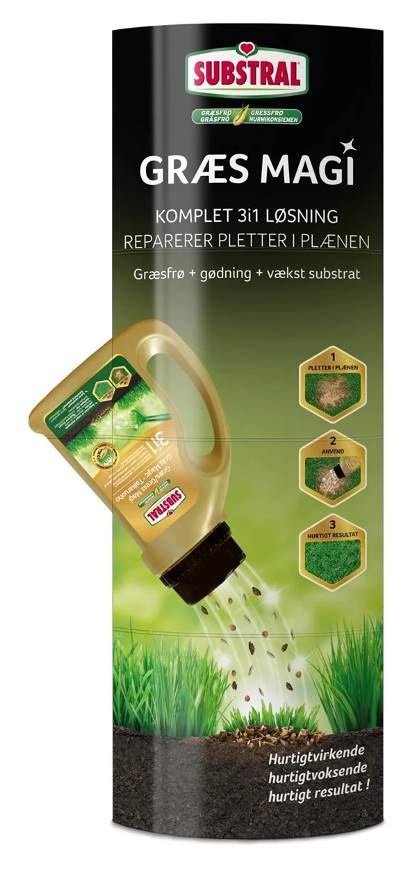 - Græs Magi er reparerer de bare pletter i græsplænen, så den igen bliver helt grøn og tæt.