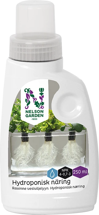 Plantenæring, specialtilpasset til hydroponisk dyrkning, dvs. dyrkning i vand. Behændig flaske med praktisk skala i proppen, som gør det nemt at dosere næringen. Rækker til flere dyrkningsomgange.