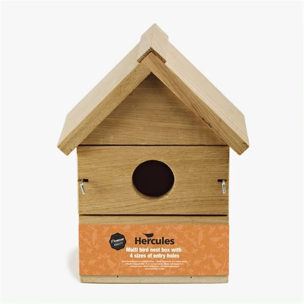 I denne multi redekasse har du mulighed for at vælge den rigtige hulstørrelse til de fugle du har boende i haven. De fleste redekasser skal sidde fra 1,5 meter til ca 3 meter fra jorden, dog er der altid undtagelser for fugle der ikke følger “reglerne”. Placer gerne redekassen mod nord/nordvest, således at solen ikke skinner direkte på redekassen. Der medfølger 4 stk hulpaneler.