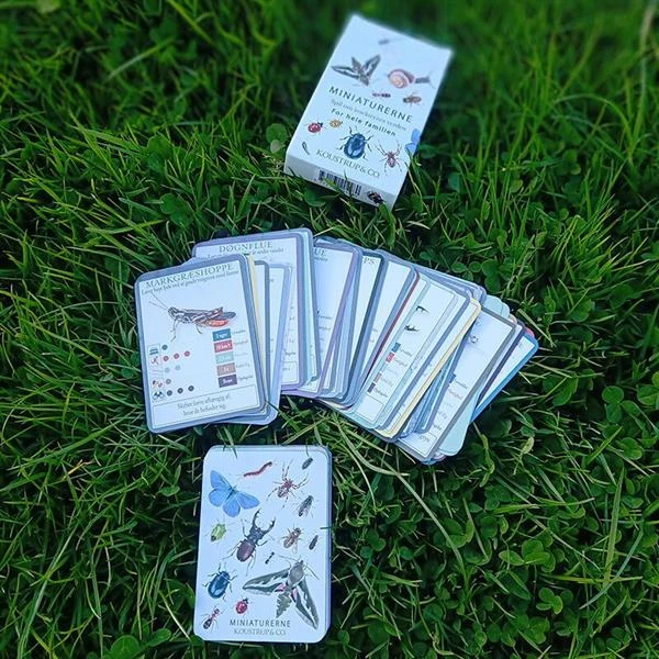 Med dette nye kortspil bliver du klogere på de allermindste dyr – miniaturerne – som kribler og krabler rundt i haven, i skoven og på legepladsen. Alle kort har nemt aflæselige ikoner og prikker, der gør, at børn helt ned til treårsalderen kan dyste mod hinanden uden voksen-indblanding. Kortenes sjove facts gør spillet interessant for både børn og voksne og kan spilles af alle familiens medlemmere.