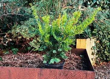 Taks (Taxus media ‘Farmen’) er en stedsegrøn plante med blanke, lysegrønne og bløde nåle.