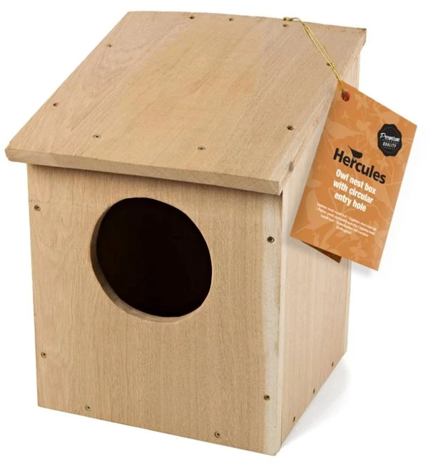 Ugle redekasse er lavet af naturligt materiale, klar til opsætning. Placeres højt i et fx birketræ.